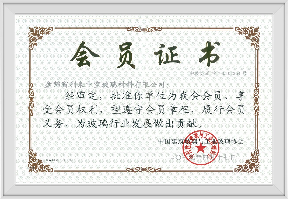 中国建筑玻璃与工业玻璃协会会员证书